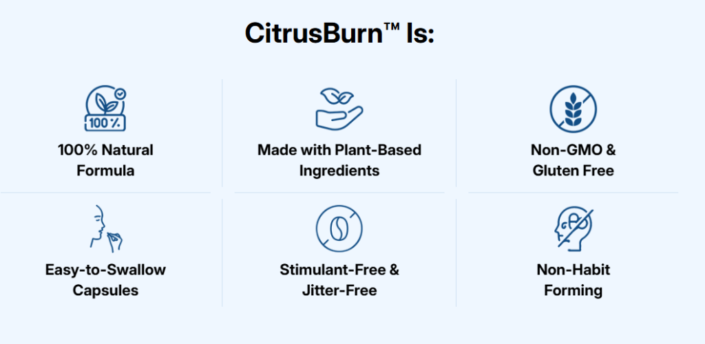 Unlike traditional fat burners that depend heavily on caffeine, CitrusBurn™ is positioned as a fat burner without caffeine, making it suitable for people sensitive to stimulants.